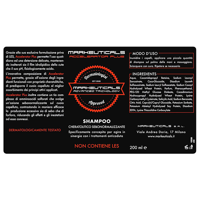 Accelerator Plus inoltre contiene un tio complesso di amminoacidi solforati che svolge un'azione sebonormalizzante sul cuoio capelluto, contrastando in maniera efficace la produzione eccessiva sia di sebo che di forfora, riducendo gli effetti e gli inestetismi ad esso connessi.
